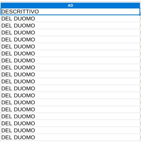 Nella colonna “AD – DESCRITTIVO”, trova il nome della via o della piazza che ti interessa.