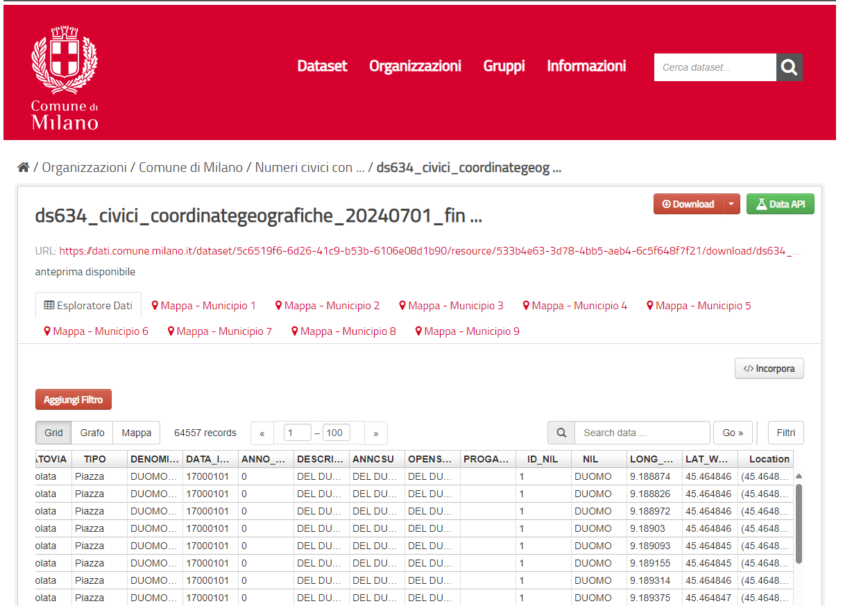 Il Comune di Milano pubblica un dataset con la georeferenziazione dei numeri civici di tutta la città.
