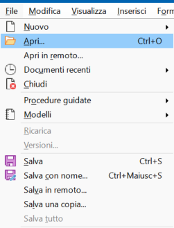 Apri LibreOffice Calc, e seleziona dal menù “File” 🡪 “Apri”