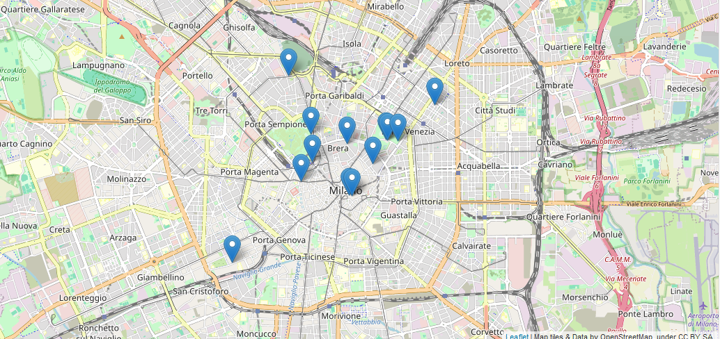 Grazie alle coordinate geografiche è possibile generare una mappa dei musei, come nell’immagine che segue.