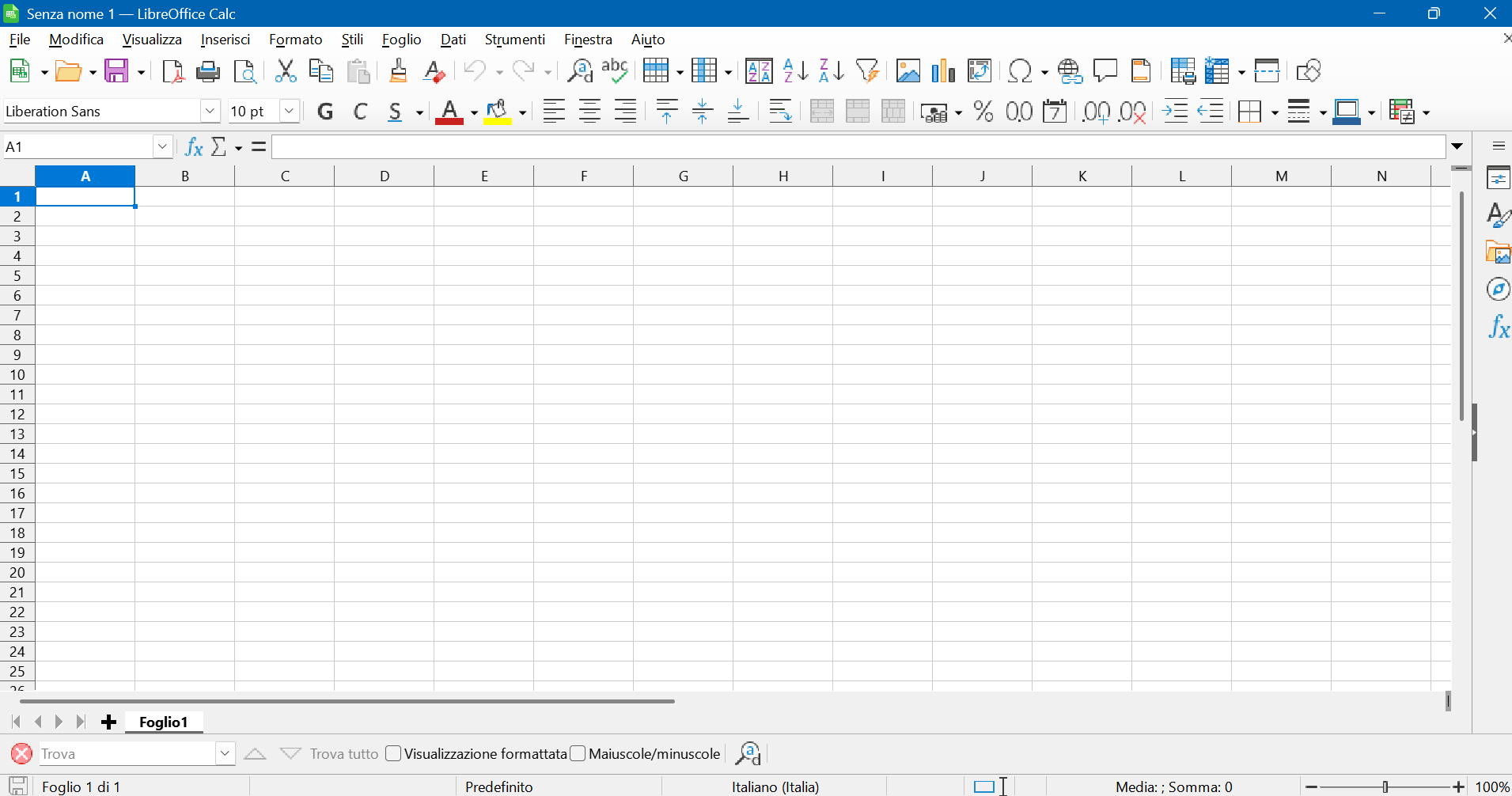 Apri LibreOffice Calc sul PC, otterrai un foglio bianco, come quello di seguito.