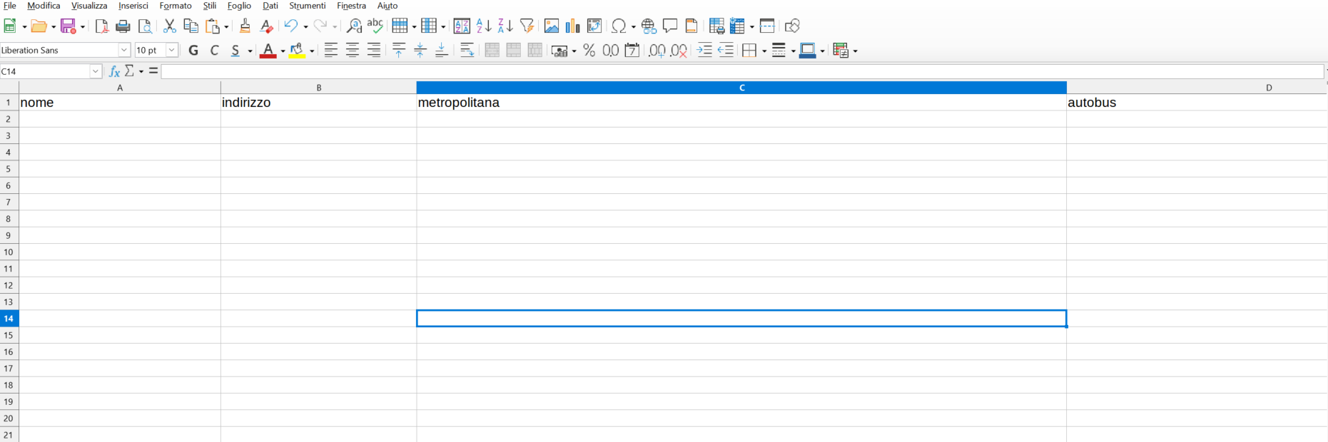 Per prima cosa è consigliabile visualizzare un dataset di esempio all’interno di LibreOffice Calc, per vedere come è fatto.