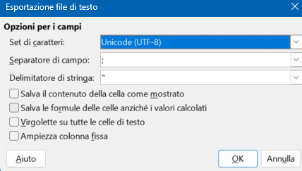 - Sia spuntata l’opzione “Formatta il campo tra virgolette come testo”